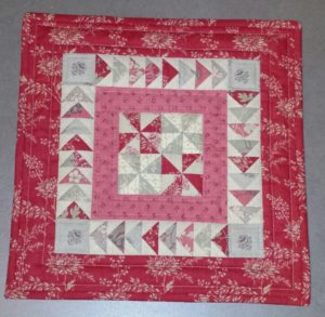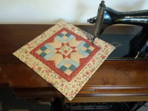Je vous présente un mini patch réalisé il y a quelques années pour un challenge organisé pour l’exposition de Birmingham. Il fallait travailler le thème de la musique et un petit rond rouge devait être présent. Il a voyagé pendant 2 ans en Europe dans les diverses expositions organisées par les pays qui participent à ce challenge… Vous l’avez peut-être vu.