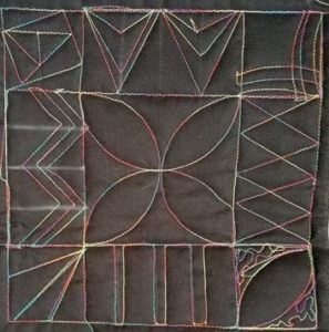 La matinée est consacrée au piqué libre. Après un petit topo sur l’utilisation basique de la machine Gina nous montre comment réaliser des tas des motifs pouvant être utilisé comme remplissage ainsi que d’autres servant principalement pour les bordures.