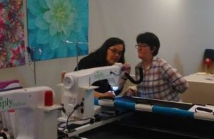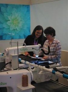 2018 étant l’année de tous les changements, j’ose enfin me lancer dans le quilting sur longarm. Afin de tester la méthode, je m’inscris à 2 cours au salon de l’aiguille en fête. Ils sont donnés par Gina Siembieda, professeur chez Handi Quilter depuis de très longues années.