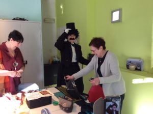 Malgré le froid, l’ambiance était chaleureuse. Notre boutentrain Colette est arrivée déguisée et à mis beaucoup d’ambiance. Nous avons fêter le carnaval de manière impromptue tout en travaillant joyeusement.
