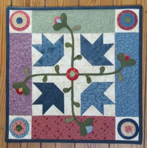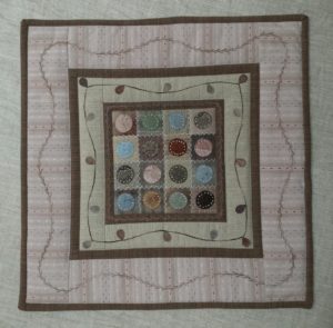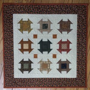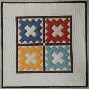 Des minis barattes : j’ai reçu les blocs de mon amie Anne, elle n’en faisait rien… j’aime beaucoup ce bloc… je les ai donc utilisés pour faire ce mini quilt :