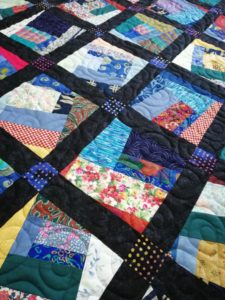 Cette semaine j’ai travaillé sur le quilt aux kilomètres qu’Anne L a réalisé lors d’un cours.
