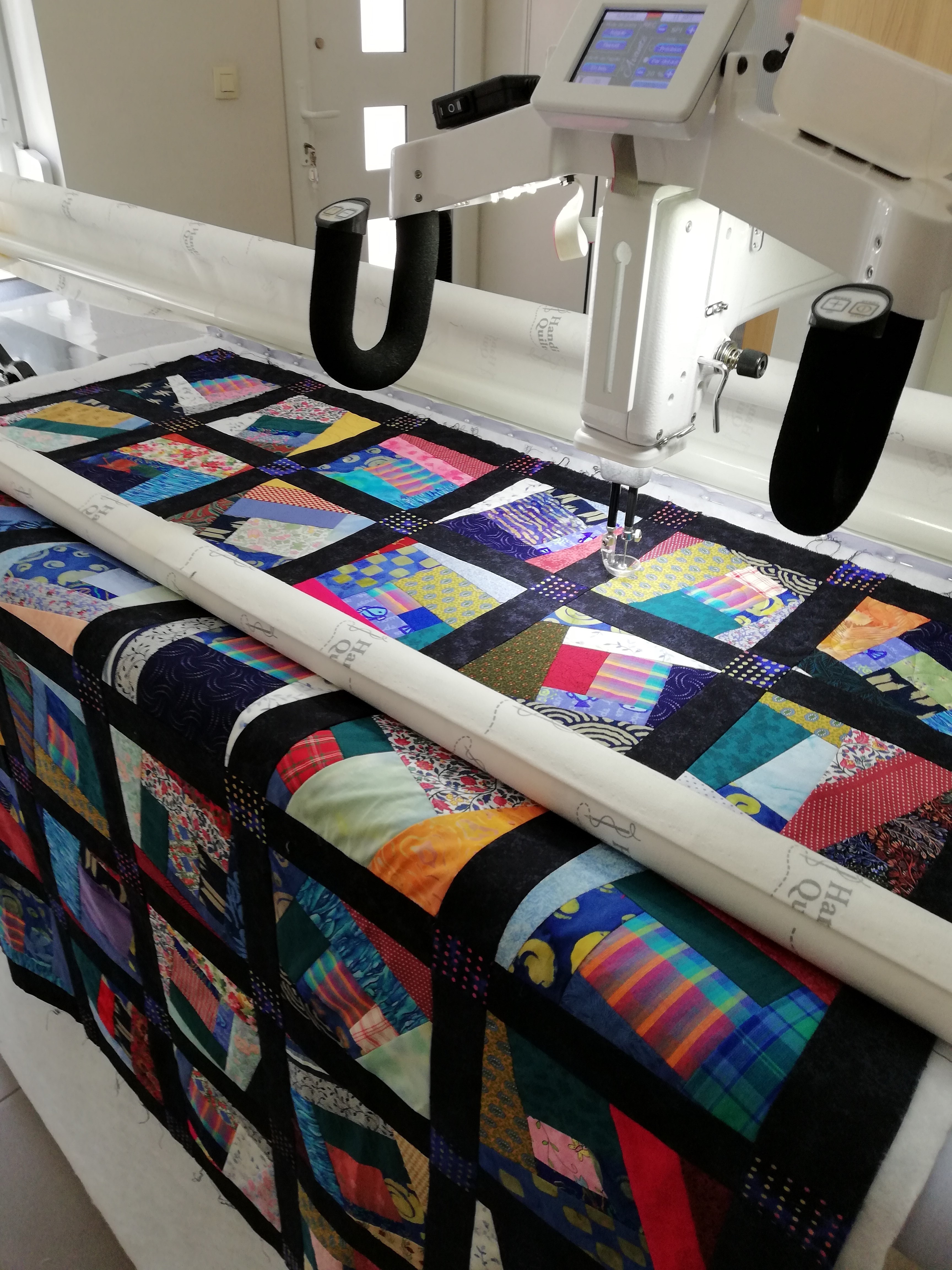 Patch installé sur la machine avant le quilting :