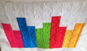 Côté quilting professinnel, j’ai suivi la formation « Quilting makes a difference » de Judi Masden. Vraiment très intéressant de voir qu’à partir d’un même patchwork, on obtient 2 quilts très différents en fonction du quilting réalisé.
