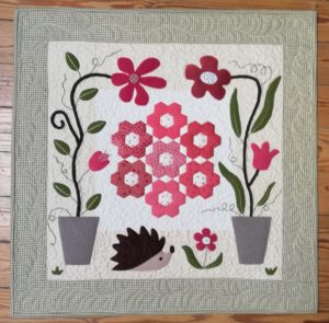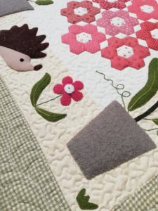 J’ai également terminé un petit patch commencé il y a longtemps. C’est un modèle du « Jardin de Woolen » mélangeant coton, lainage, et broderie.